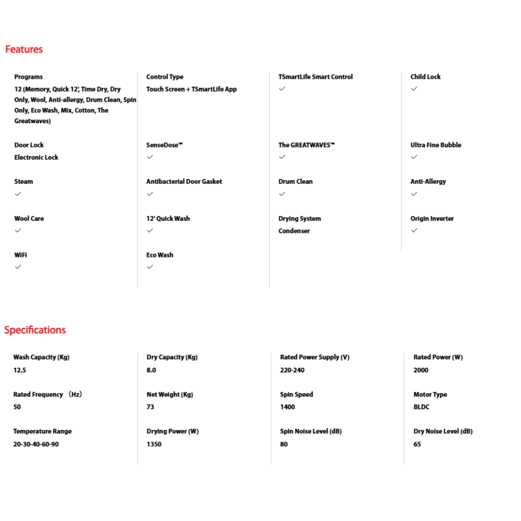• SENSEDOSE™ • SMART CONTROL • ULTRA FINE BUBBLE • THE GREATWAVES™ • CONDENSER • STEAM • DRUM CLEAN • ORIGIN INVERTER • DETAILS MATTER