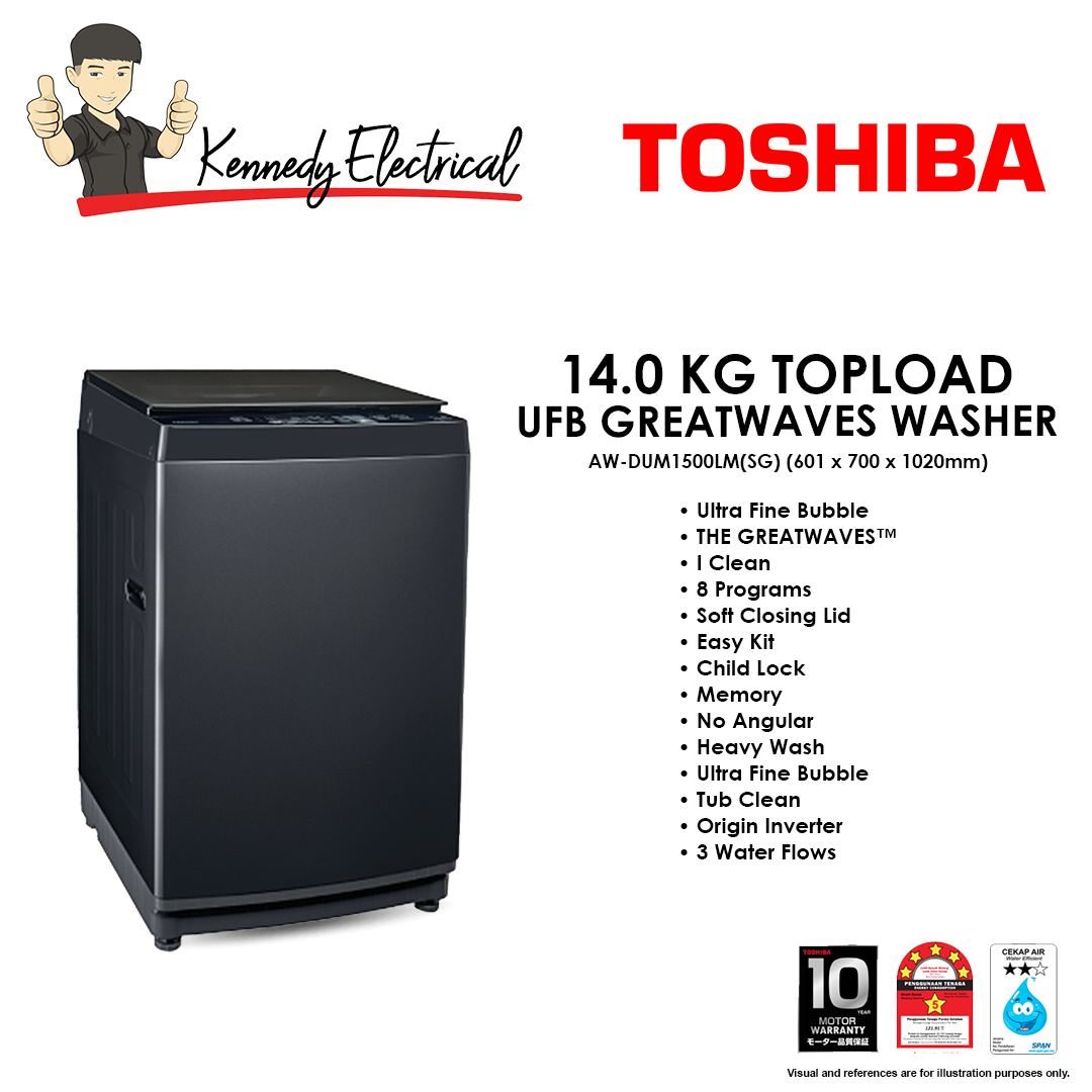 Toshiba 14.0kg Topload UFB Greatwaves Washer AW-DUM1500LM(SG)