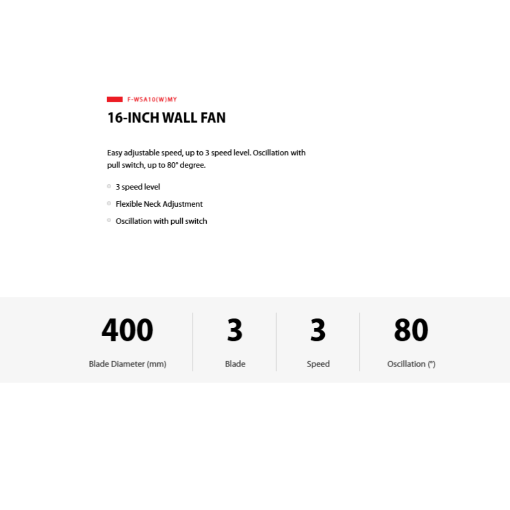Toshiba 16” Wall Fan F-WSA10(W)MY