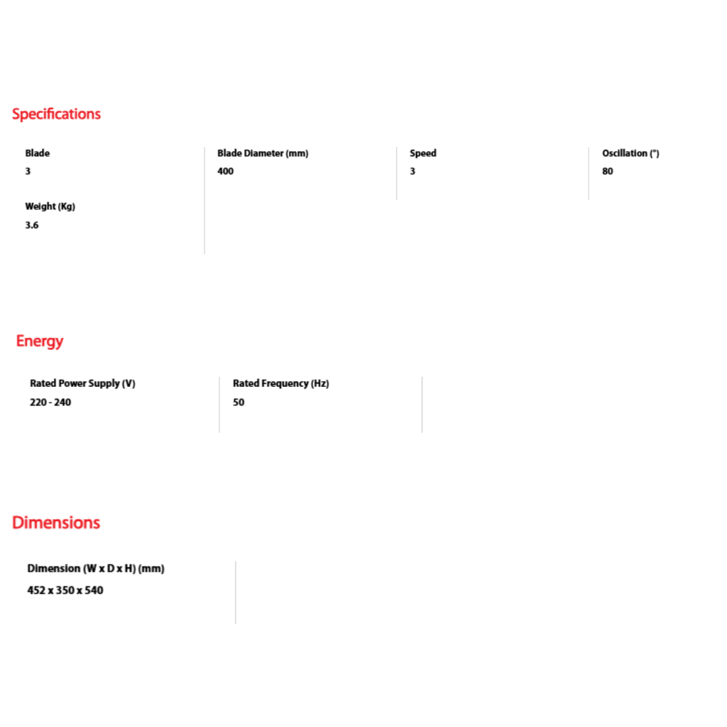 • 3 speed level • Flexible Neck Adjustment • Oscillation with pull switch