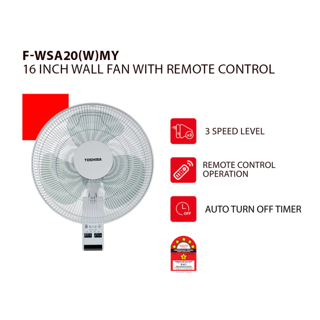Toshiba 16” Wall Fan With Remote Control F-WSA20(W)MY