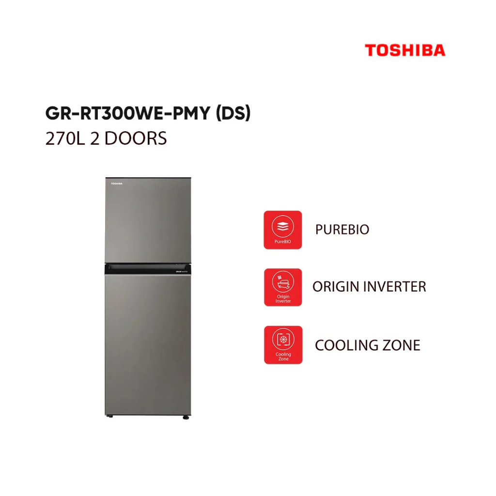 Toshiba 270L 2 Doors Origin Inverter Refrigerator GR-RT300WE-PMY(DS)