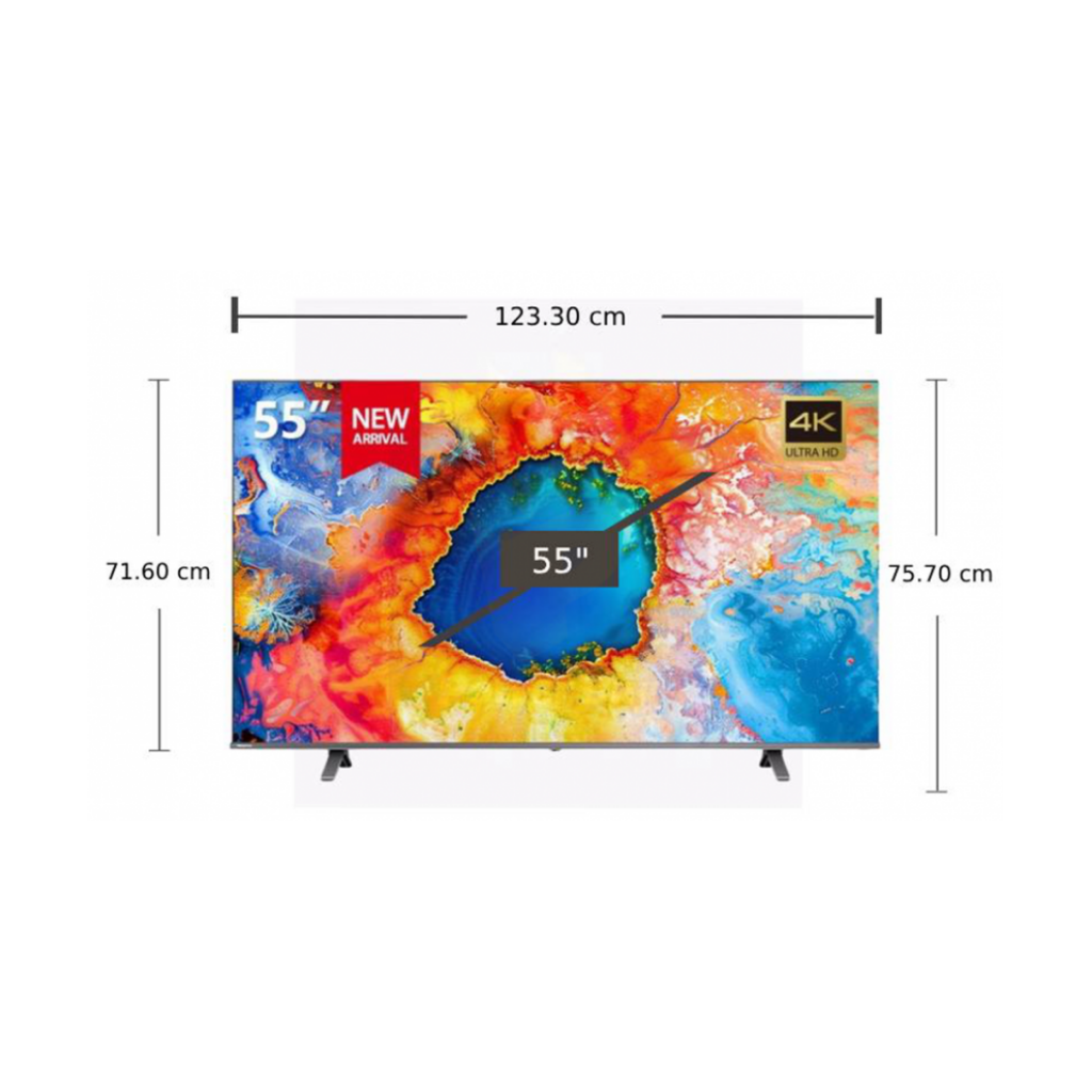 • Screen: 55-inch 4K QLED. • Smart: VIDAA OS. • Features: Quantum Dot. • Warranty: 2 Years General Warranty.