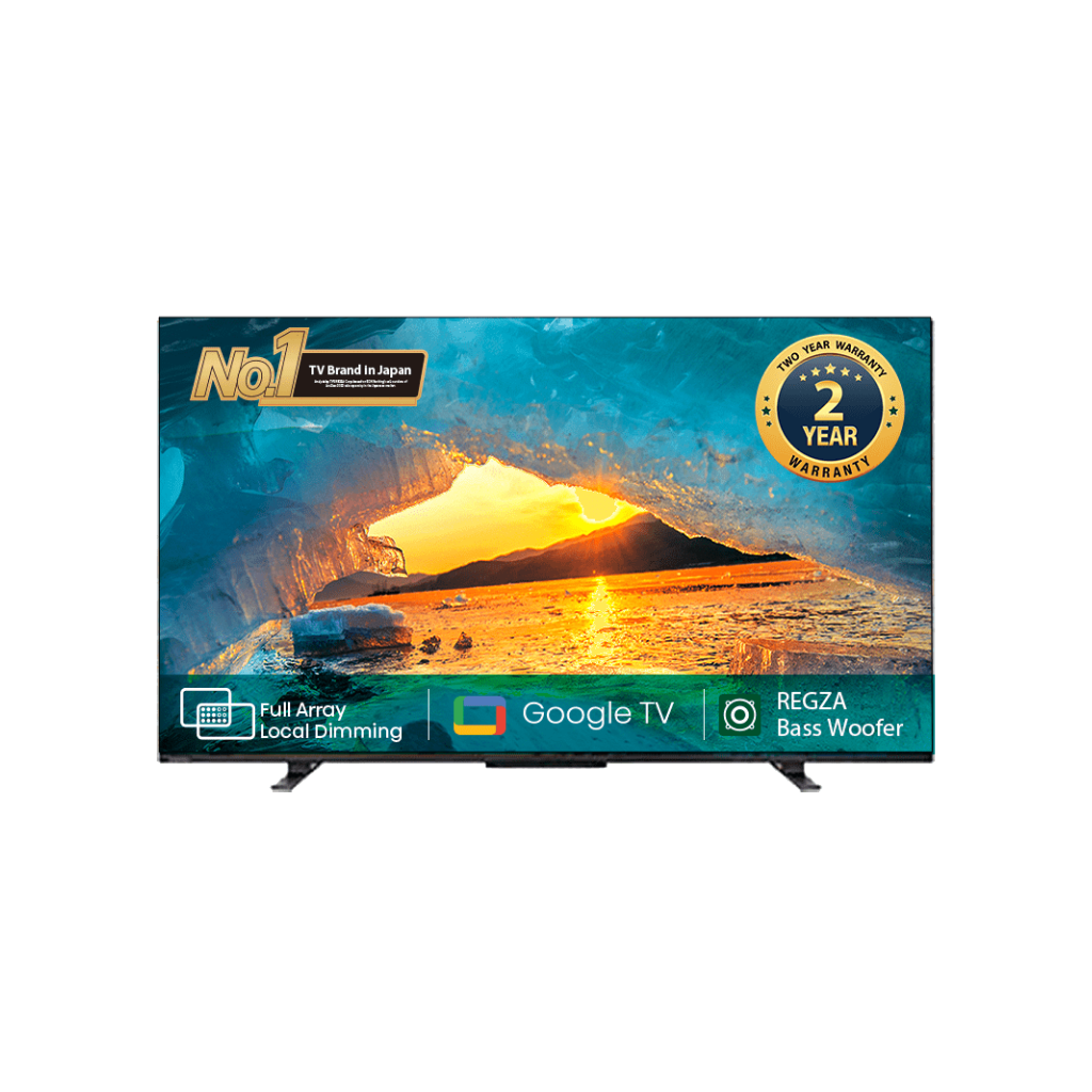 • Screen: 65-inch 4K QLED. • OS: Google TV. • Features: Full Array Local Dimming, Quantum Dot. • Warranty: 2 Years General Warranty.
