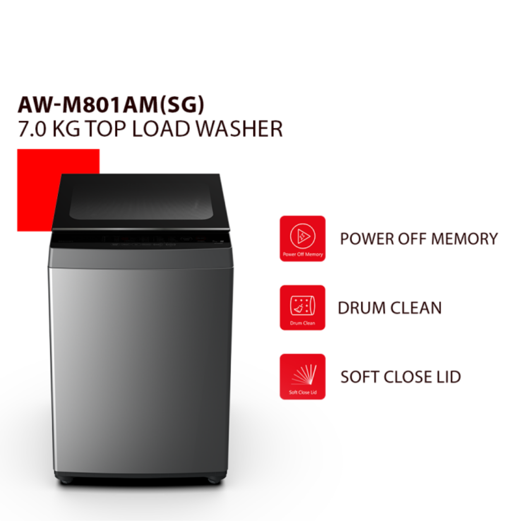 Toshiba 7.0Kg Top Load Washer Fundamentally Clean Matters AW-M801AM(SG)