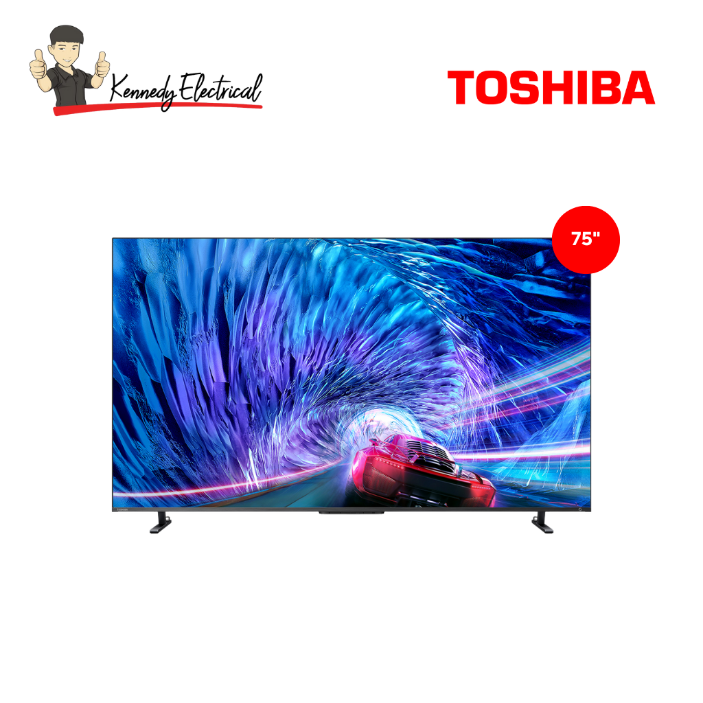 • Screen: 75-inch 4K UHD. • Features: REGZA Engine ZRi, 144Hz Gaming, Dolby Vision IQ. • Warranty: 2 Years General Warranty.