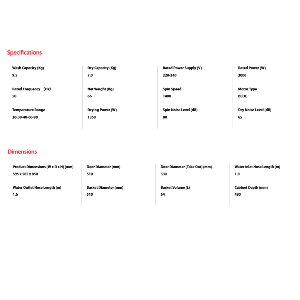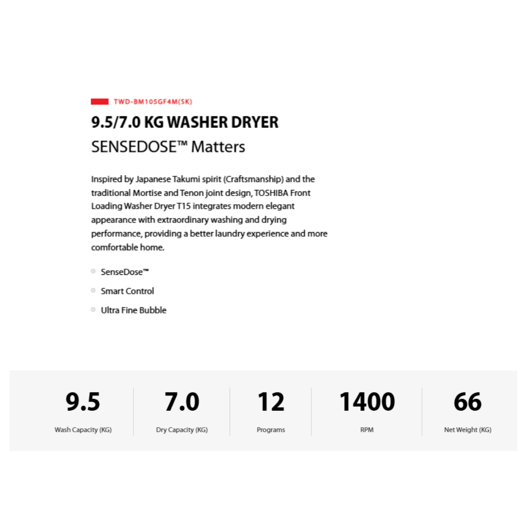 Toshiba 9.5/7.0 Kg Washer Dryer Sensedose™ Matters TWD-BM105GF4M(SK)