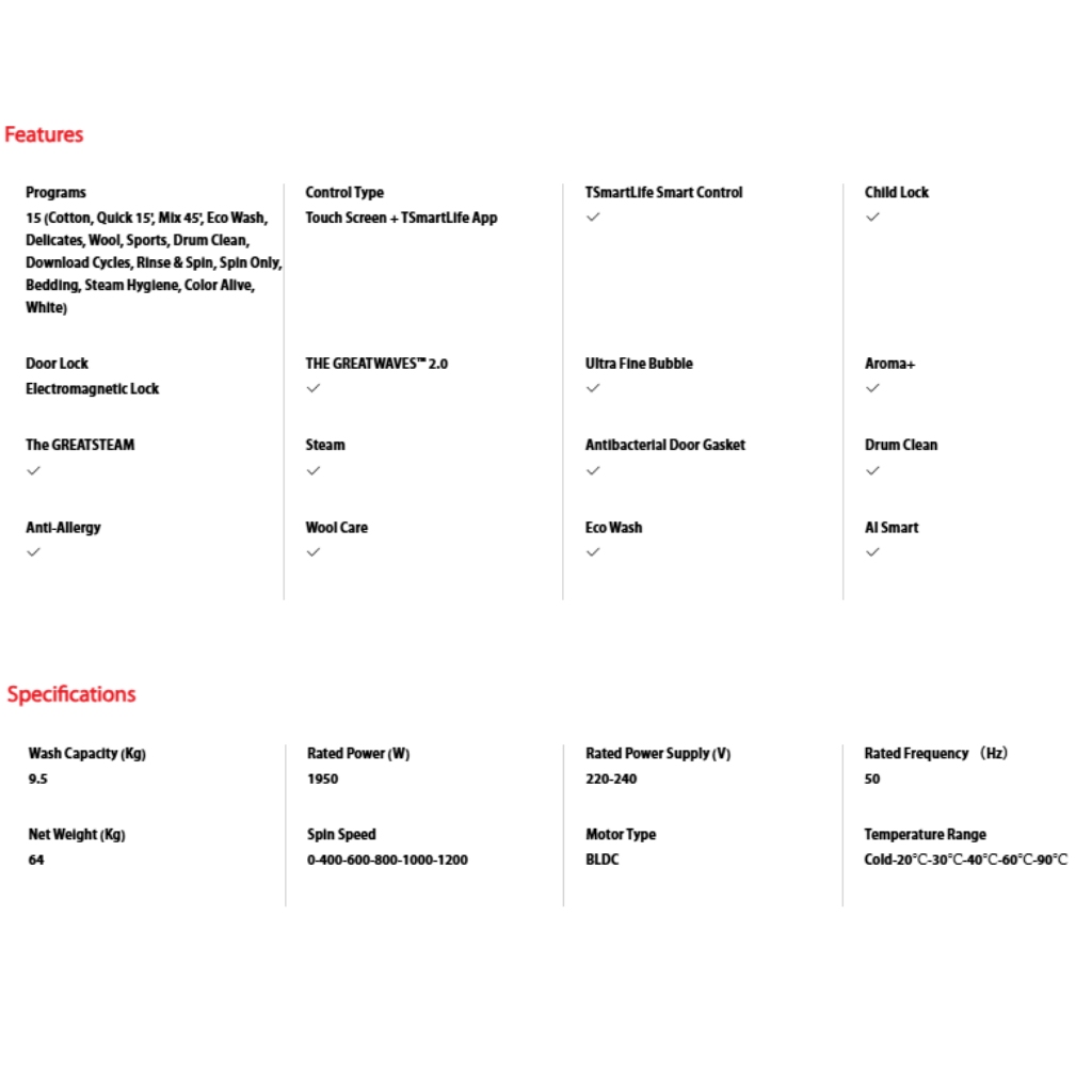 • Fine Structure • The GREATWAVES™ 2.0 • ULTRA FINE BUBBLE • SMART CONTROL • AROMA+ • GREATSTEAM • COLOR ALIVE • HYGIENE CARE • ORIGIN INVERTER • AI SMART