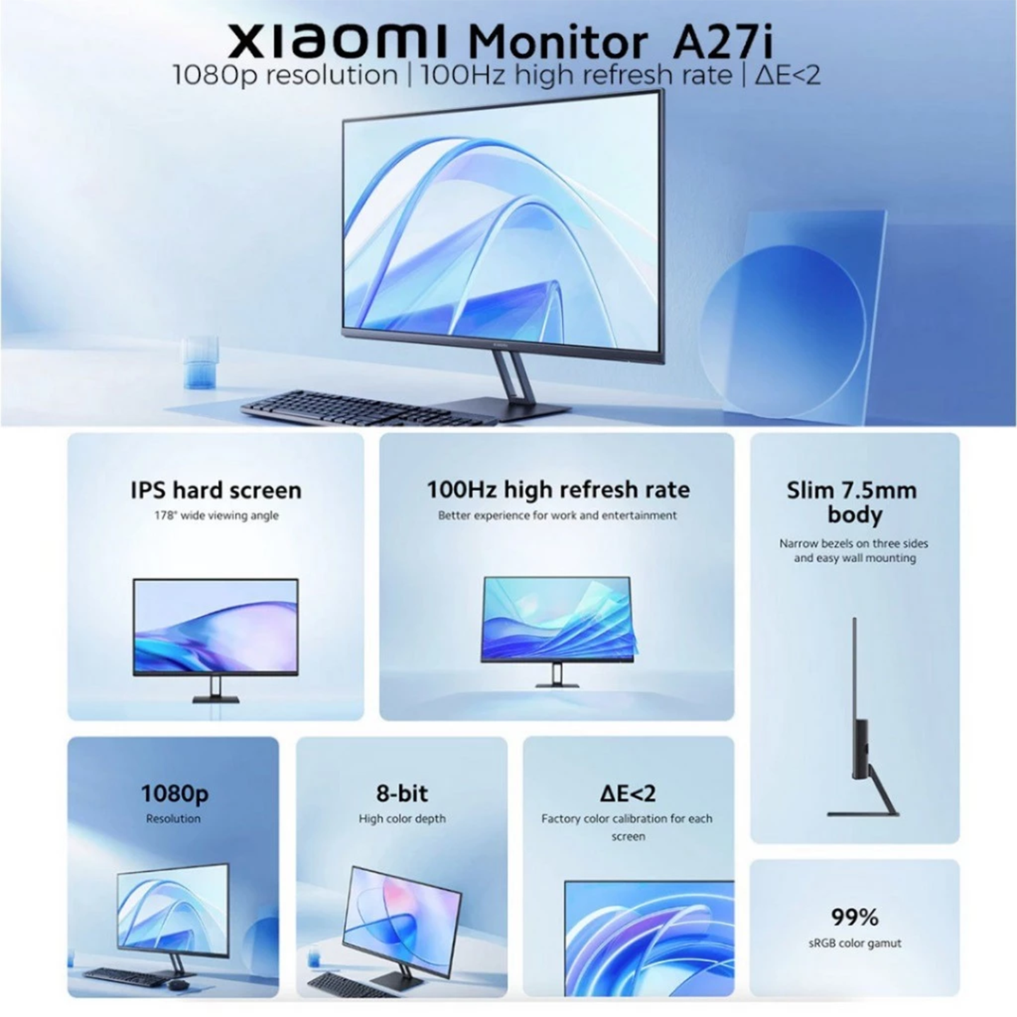 Buy Xiaomi 27" A27i Monitor (ELA5347UK) with clear visuals. Features 100Hz refresh rate & slim body. Original 3 Years Warranty & best price. Shop now.