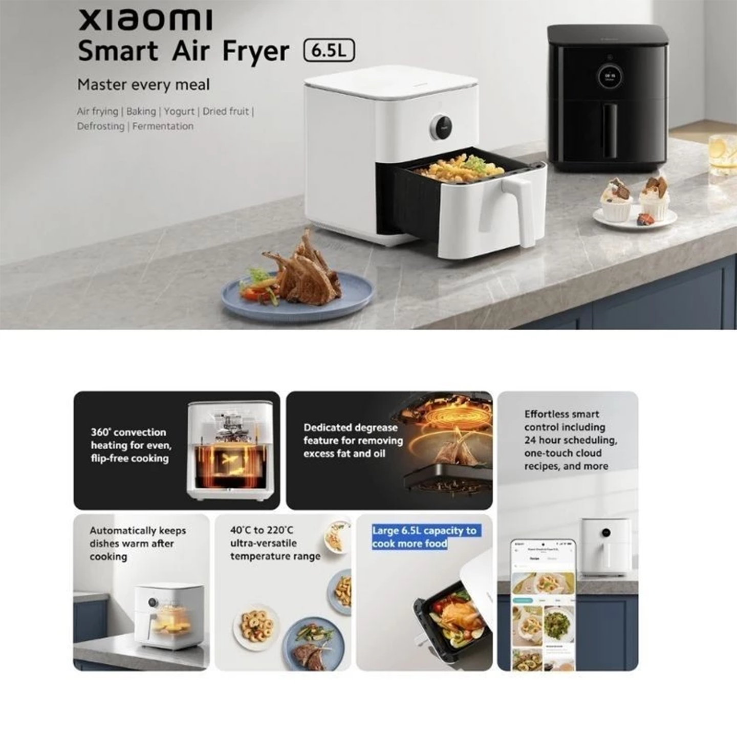 Buy Xiaomi 6.5L Air Fryer (BHR7359GB) with tender roast mode. Features large capacity & smart recipes. Original 1 Year Warranty. Shop now.